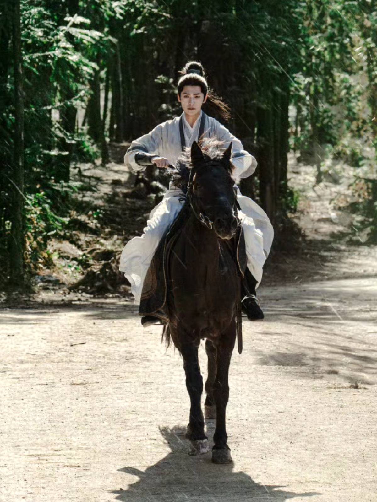 行云流水的动作戏,显然不是一朝之功能够做到的,而其他古装剧都得找道具、找替身拍的骑马戏,杨洋也是亲力亲为的完成。