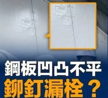 据台湾联合新闻网报道,民进党当局领导人赖清德19日登上“海鲲”号潜艇。马文君称,官方随后公布的视频中,有一张照片是赖清德、台“安全会议”秘书长吴钊燮、防务部门负责人顾立雄等人,坐在潜艇内的会议桌前合影,但赖清德背后的钢板明显凹凸不平,甚至还有至少3个铆钉处没栓上。她质疑,“3年前‘海鲲’号潜艇帆罩外壳凹凸不平,当时海军与台船说那叫‘瘦马效应’,这回内装也是吗?那3颗铆钉没栓,又是什么原因?”