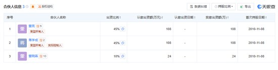 公开资料及天眼查APP显示,鑫盛投资的合伙人为董晓燕(出资比例为10%)、董晓燕的弟弟董亮(出资比例为45%)、董晓燕丈夫蒋学真的弟弟蒋学成(出资比例为45%)。