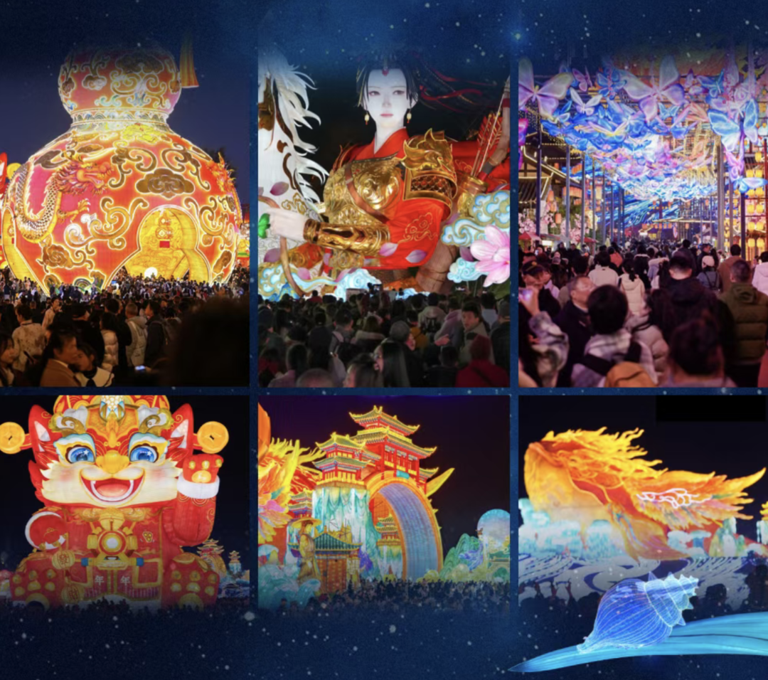 “天下第一灯”的名号,绝非虚传。春假期间,中华彩灯大世界万盏彩灯璀璨绽放,流光溢彩铺满夜空。